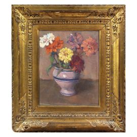 POT WITH ZINNIAS