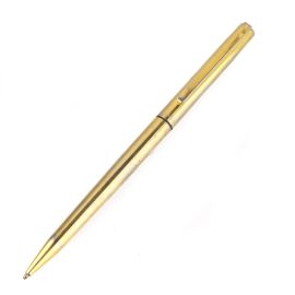 Una penna a sfera dal fusto scanalato in metallo dorato con cappuccio, caricamento a cartuccia, lungh. cm 14