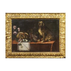 NATURA MORTA CON FRUTTA E CANE