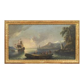 VEDUTA DI PORTO CON BARCAIOLI E NAVI