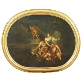 coppia di dipinti ad olio su tela, cm 94x117,5