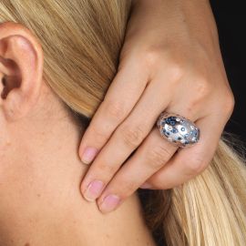 SAPPHIRE AND DIAMOND DOMED RING IN 18KT WHITE GOLD