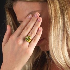 SNAKE-SHAPED ENAMELED RING IN 18KT YELLOW GOLD