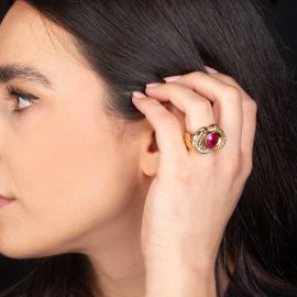 ANELLO CON PIETRA ROSSA E DIAMANTI
