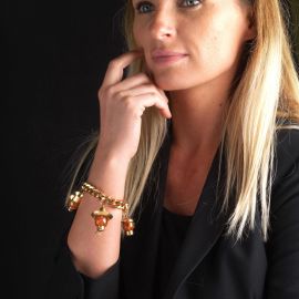 CHAIN BRACELET WITH CHARMS IN 18KT YELLOW GOLD AND SILVER