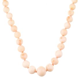 composta da una fila di sfere in corallo rosa alternate a distanziali in onice sfaccettati, fermatura in oro a basso titolo, lungh. cm 57, gr. 36