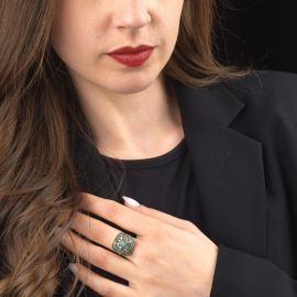 EMERALD AND DIAMOND RING AND BROOCH IN SILVER AND GOLD