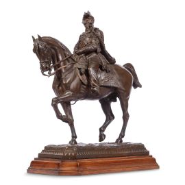 La scultura in bronzo, opera di Stanislao Grimaldi, potrebbe essere il modello in piccolo per l’approvazione del monumento equestre ad Alfonso Ferrero della Marmora (1804-1878), inaugurato nel 1891 al centro di piazza Bodoni a Torino, a celebrazione di un protagonista della storia militare e politica del Piemonte ottocentesco.