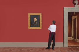 Analogamente a opere quali Yorick (1889), nel ritratto in catalogo la mirabile resa formale, elemento costante dell’abilità artistica di Corcos, diviene espressione di una raffinata e spontanea capacità introspettiva, restituendoci l’immagine di un uomo elegante che, pur in dialogo con l’osservatore, appare assorto nei propri pensieri.
