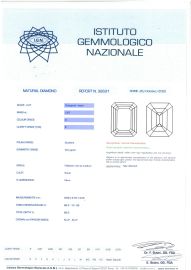 in oro bianco 18kt, al centro un diamante taglio ottagonale (smontato) di ct 2.67, colore G, purezza IF, affiancato da due diamanti taglio tapes per ct 0.30 circa, mis. 48, gr. 3. Corredato di certificato IGN del 26/10/2022 attestante le caratteristiche.