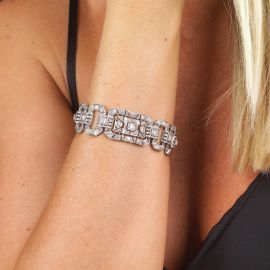 in platino, impreziosito da diamanti taglio vecchio per ct 5.50 circa, lungh. cm 18,5, gr. 53
