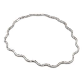 in oro bianco 18kt, realizzata seguendo un motivo ondulato, impreziosita da una fila di diamanti taglio brillante per ct 7.30 circa, colore G, purezza Vvs, punzoni 750 e del fabbricante, lungh. cm 39, gr. 30. Corredata di certificato S.G.R attestante le caratteristiche.