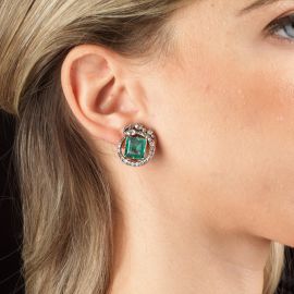 EMERALD AND DIAMOND STUD EARRINGS IN SILVER AND GOLD