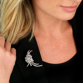FLOWERING BRANCH DIAMOND BROOCH IN 18KT WHITE GOLD