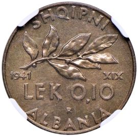 COLONIE ITALIANE. ALBANIA. VITTORIO EMANUELE III (1939-1943) 0,10 LEK 1941 XIX
