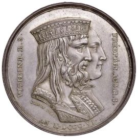 Ar gr. 38,90 mm. 40 Busti a d. di Napoleone e Carlo Magno R/ Busti a d. di Vitikindo coronato e Federico Augusto