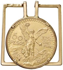 PENDENTE IN ORO GIALLO 18K RECANTE AL CENTRO MONETA DA 50 PESOS