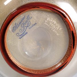 in vetro con inclusioni in oro e bordi in pasta di vetro bordeaux