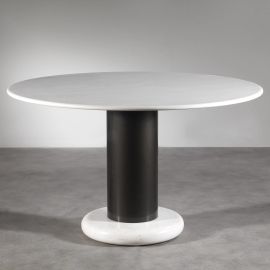 «LOTO ROSSO» TABLE, BLACK LACQUERED METAL CENTRAL LEG, MARBLE TOP AND BASE
