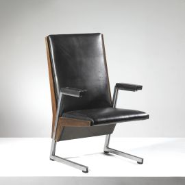 struttura in legno e metallo cromato, imbottita e rivestita in pelle nera