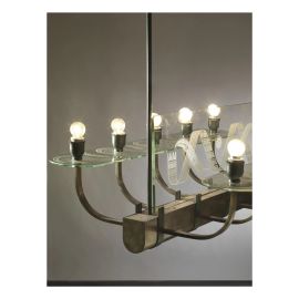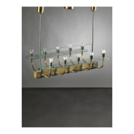 HANGING LAMP, BRASS AND GLASS STRUCTURE