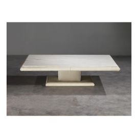 SMALL TABLE, WHITE LEATHER UPHOLSTERY STRUCTURE, MARBEL TOP
