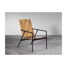TWO «NENA» FOLDING ARMCHAIRS, WOODEN AND METAL STRUCTURE, REMOVABLE CUSHIONS