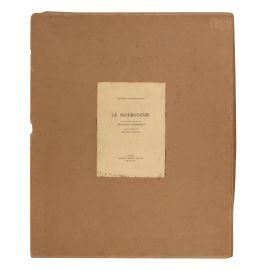 In folio (430 x 360 mm) contenente 12 tavole protette da veline e cartella con frontespizio in rosso e nero e con 4 pagine di testo, entro altra cartella in pelle marrone con titolo a secco al piatto anteriore e con lacci di cuoio, entro scatola originale in cartone con tassello cartaceo al piatto superiore. -- Tracce di ossidazione alla cartella del colophon, scatola originale un po’ sciupata, ma ottime impressioni fresche, con margini editoriali, e legatura in perfetto stato di conservazione.