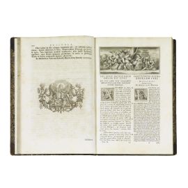 6 volumi in folio (366 x 240 mm). Ritratto del Santo presente in 4 volumi, assente dal primo e forse strappato dal terzo (SBN lo registra solo nel primo e secondo volume). Titoli in rosso e nero con vignetta calcografica raffigurante la Biblioteca Vaticana, testatine, finalini e belle iniziali calcografiche, testo parallelo greco-latino (primi tre volumi) e latino-siriano (secondi tre volumi) su due colonne. Mezza pelle coeva, dorso a nervi, tassello in marocchino rosso al secondo scomparto, titoli e decorazioni dorate, piatti marmorizzati, tagli spruzzati d’azzurro. Timbro della “Scolasticat de Differt Belgique” e “Scolasticat Soc. de Marie” e altro timbretto religioso privato, ex libris di Giovanni Alberto De’ Grandi (1690-1752) Vescovo di Chioggia al verso del ritratto del Santo nel secondo tomo siriaco-latino. -- Abrasioni e sbucciature alle legature, occasionali piccole pallide gore marginali, carte saltuariamente ingiallite e altre trascurabili tracce del tempo.