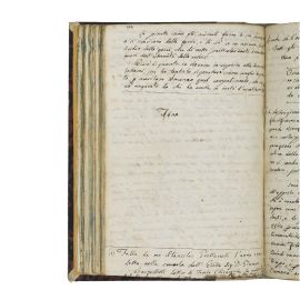 Manoscritto cartaceo in 8vo (205 x 150 mm) di [224] carte che recano una numerazione coeva non sempre sequenziale ma senza apparenti mancanze nel testo. Mezza pergamena leggermente posteriore con tassello al dorso, tagli azzurri. -- Il margine inferiore è talvolta rifilato con perdita dei testo, tracce del tempo.