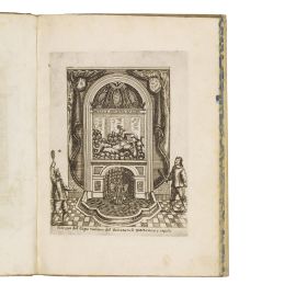 In 4to in mezza pergamena moderna, tagli spruzzati d’azzurro, frontespizio e 43 tavole calcografiche, qualche antica annotazione, minime tracce del tempo.