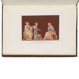 In folio in vitellino coevo decorato in oro, piatti riquadrati da cornice floreale, dorso liscio con eleganti fregi dorati (sbucciature e abrasioni), “Contessa Masino Borghese” stampato all’occhiello, collazionato completo con 53 tavole calcografiche di cui quattro colorate a mano, fioriture marginali e alle veline (più forti in qualche punto).