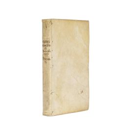 In 4to piccolo in pergamena semi-flessibile, tagli spruzzati, antiporta incisa con scena allegorica, fregi e iniziali xilografici, carte occasionalmente brunite in modo pallido o leggermente fiorite ai margini, ex libris Biblioteca Banzi, nel complesso buona copia completa.