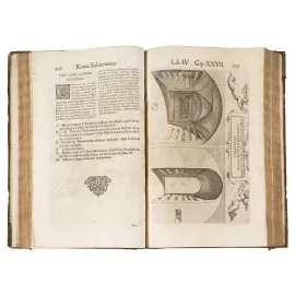 (Roma - Illustrati 600) BOSIO, Antonio - ARINGHI, Paolo. Roma subterranea novissima. Romae, expensis Blasij Diuersini, & Zanobij Masotti bibliopolarum. Typis Vitalis Mascardi, 1651. 2 volumi in folio, legatura coeva in piena pelle (difetti), 1 tavola ripiegata nel primo volume, 6 tavole ripiegate nel secondo, foro di tarlo, bruniture e altri difetti vari. Si aggiunge altra copia della stessa opera in legatura coeva con armi cardinalizie, non collazionata, difettosa (dorsi molto sciupati, grande gora al primo volume, ecc.)
