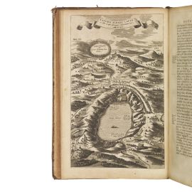 PRIMA EDIZIONE di questa opera di notevole interesse per la storia, l’archeologia e la topografia del Lazio, splendidamente illustrata con raffinate incisioni calcografiche. Athanasius Kircher (1602-1680) gesuita, filosofo, storico e museologo tedesco del XVII secolo, giunse a Roma nel 1635 e dedicò molto tempo allo studio della città e dei suoi dintorni, analizzando sia le fonti antiche, sia i risultati delle ricerche di altri studiosi, con molti dei quali scambiò lettere, e recandosi sui luoghi oggetto dei suoi approfondimenti per esaminarli personalmente. Kircher pubblicò una quarantina di opere, anzitutto nei campi degli studi orientali, della geologia e della medicina, è stato paragonato a Leonardo da Vinci per la sua enorme varietà di interessi. Insegnò per più di quarant’anni nel Collegio Romano, dove allestì una wunderkammer.