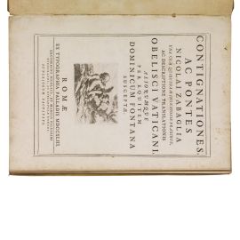 (Roma - Vaticano - Architettura - Illustrati 700) ZABAGLIA, Nicola. Castelli e ponti di maestro Nicola Zabaglia, con alcune ingegnose pratiche, e con la descrizione del trasporto dell’Obelisco Vaticano. In Roma, nella stamperia di Niccolò, e Marco Pagliarini, 1743.