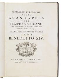 (Roma - Vaticano - Architettura - Illustrati 700) POLENI, Giovanni. Memorie istoriche della gran cupola del tempio vaticano, e de’ danni di essa, e de’ ristoramenti loro, divise in libri cinque. In Padova, nella stamperia del Seminario, 1748.