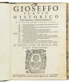 Iosephus, Flavius. Delle antichità, e guerre giudaiche; diuiso in ventisette libri. [CON:] I dieci ultimi libri delle antichità giudaiche. [CON:] Guerre giudaiche divise in sette libri. [CON:] In Venetia, presso Alessandro Vecchi, 1611.