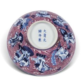 清 十九世纪 青花矾红八仙图纹碗 光绪底款