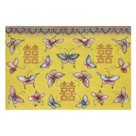 in porcellana gialla a forma quadrata decorato con farfalle e ShuangXi, reca marchio GuangXu sotto la base.