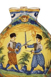 Il boccale in oggetto rappresenta dunque una significativa aggiunta alla produzione di “figurato tardo” su forme “chiusa”, finora nota, secondo Carmen Ravanelli Guidotti, in un unico esemplare databile agli inizi del XVII secolo, pubblicato nel volume sulle maioliche “figurate” di Montelupo.