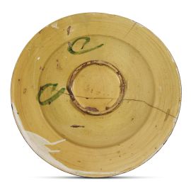 Anche il decoro della tesa, apparentemente semplice, si diffuse in molte manifatture dell’Italia centro-settentrionale, ma è a Deruta che è ben rappresentato nei piatti da pompa, variamente associato a decorazioni principali, dove spicca il piatto con l’emblema di Paolo III Farnese (1534-1549), oggi al MIC di Faenza, considerato datante per le produzioni minori.