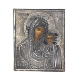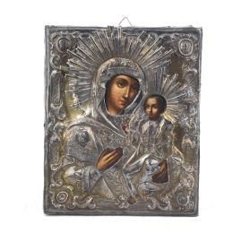 raffigurante Vergine con Bambino, riza in argento, cm 14,5x18