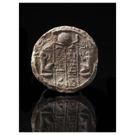 Il sigillo egizio di forma troncoconica reca impresso un testo in geroglifico che sembrerebbe restituire una formula funeraria.