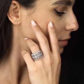 WIDE BAND DIAMOND RING IN 18KT WHITE GOLD