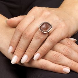 in oro a basso titolo e metallo, recante una corniola raffigurante uno stemma inciso, mis. 59, gr. 6