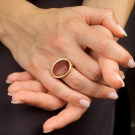 ENGRAVED CARNELIAN RING IN 18KT YELLOW GOLD