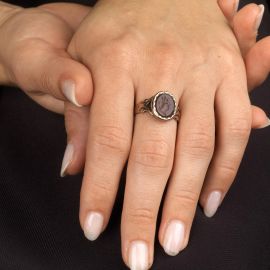 in oro a basso titolo, recante una corniola con profilo inciso, mis. 60, gr. 3