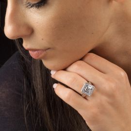 in oro bianco 18kt, di forma quadrata, impreziosito da diamanti taglio brillante per ct 0.70 circa, mis. 54, gr. 10