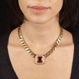 QUARTZ AND DIAMOND CURB NECKLACE IN 18KT YELLOW GOLD